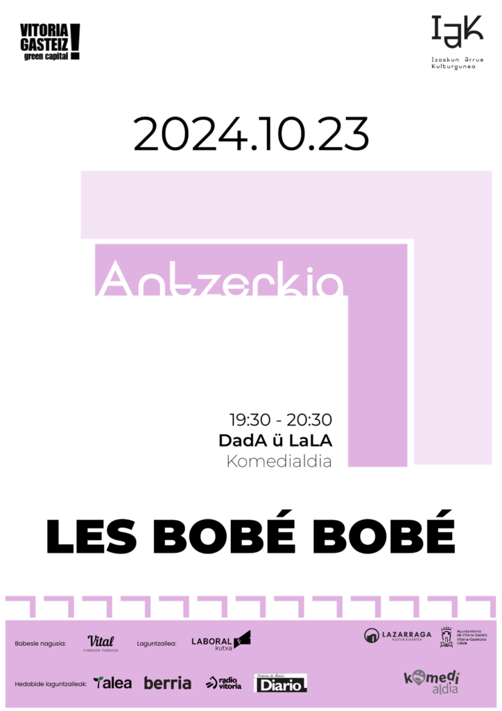 Gasteizko arte eszenikoetan ibilbide oparoa egin duten hiru kidek sortu zuten Les Bobé-Bobe antzerki taldea. 2019an aurkeztu zuten lehendabiziko lana, Jason Guerrak zuzendutako ‘Eta Kittorik ez’ obra, Ane Gebara eta Josune Velez de Mendizabal antzezle. 2020an ‘Txilin hotsak’ antzerki laburra aurkeztu zuten, eta ostean, 2023an, etorri zen ‘(H)ondoko gela’ thriller absurdoa. (www.lesbobebobe.eus-en ikus daiteke). Oraingo honetan dadaismoan sartu dira buru-belarri ‘Dada ü Lala’ antzerki absurdo, fisiko eta lotsagabearekin. Bilboko Loraldia jaialdian estreinatu zuten joan den martxoan.